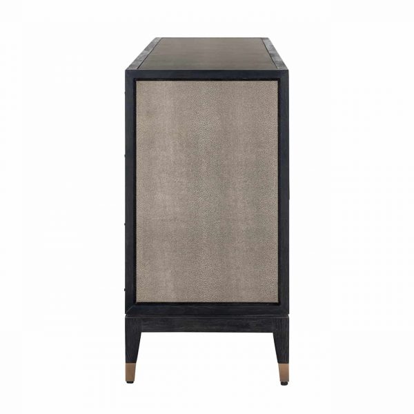 Комод «Bloomingville» с 4 распашными дверьми шагреневый предлагает достаточно места для хранения. Коллекция «Bloomingville» состоит из комбинации натурального дерева и обивки из эко-кожи прекрасно дополняет элементы выполненные из нержавеющей стали цвета матовой латуни, что создает совершенно уникальный внешний вид — элегантный и дерзкий.