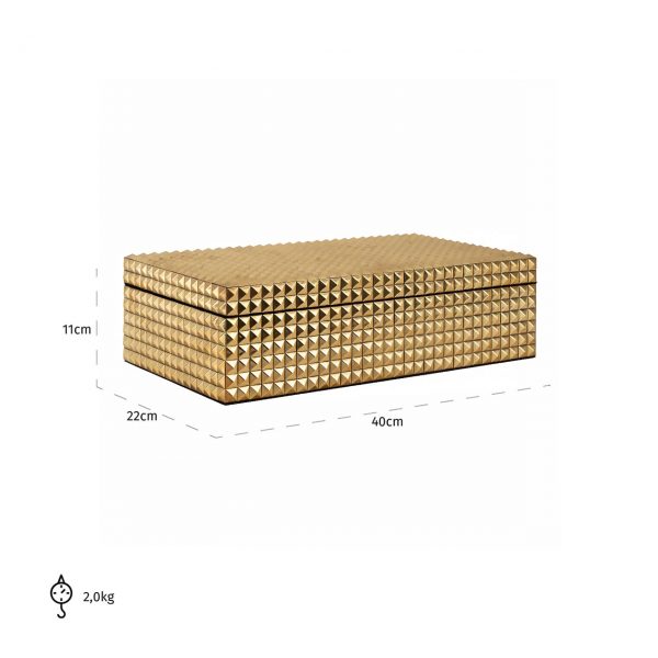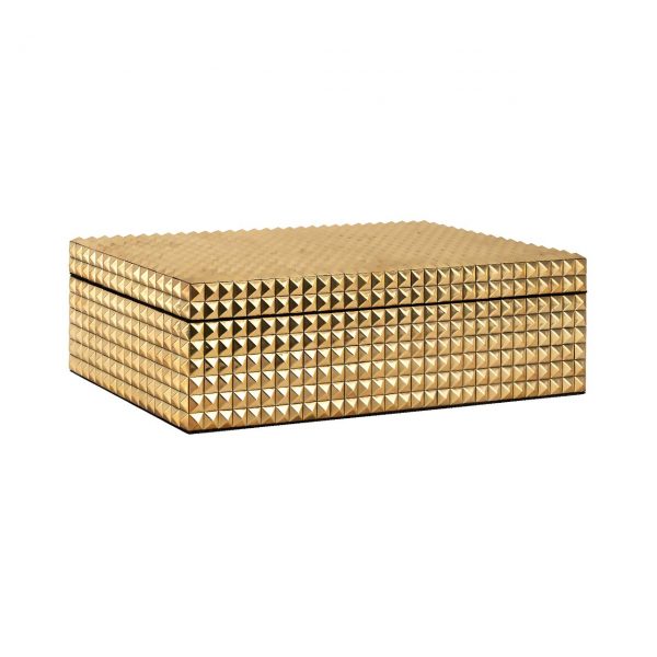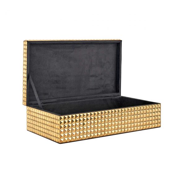 Шкатулка для драгоценностей «Blaze» Gold изготовлена из латуни и МДФ. Роскошная шкатулка для ваших самых красивых украшений. Внутри шкатулка покрыта замшей.