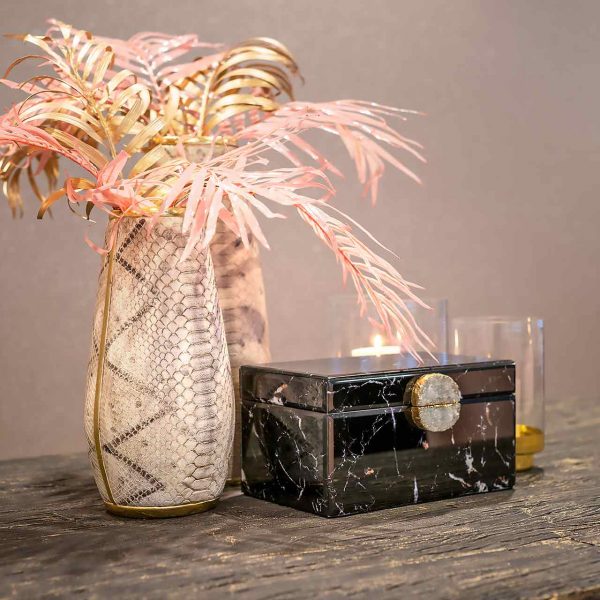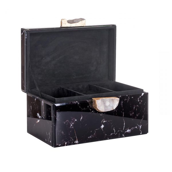 Шкатулка для драгоценностей «Maeve» с черным мрамором имеет шесть отделений внутри. Стильная шкатулка для ваших самых красивых украшений. Коробка изготовлена из стекла и МДФ, внутренняя сторона покрыта замшей.